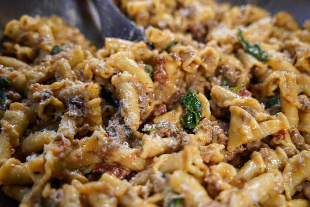 One Pot Creamy Venison Tuscan Pasta