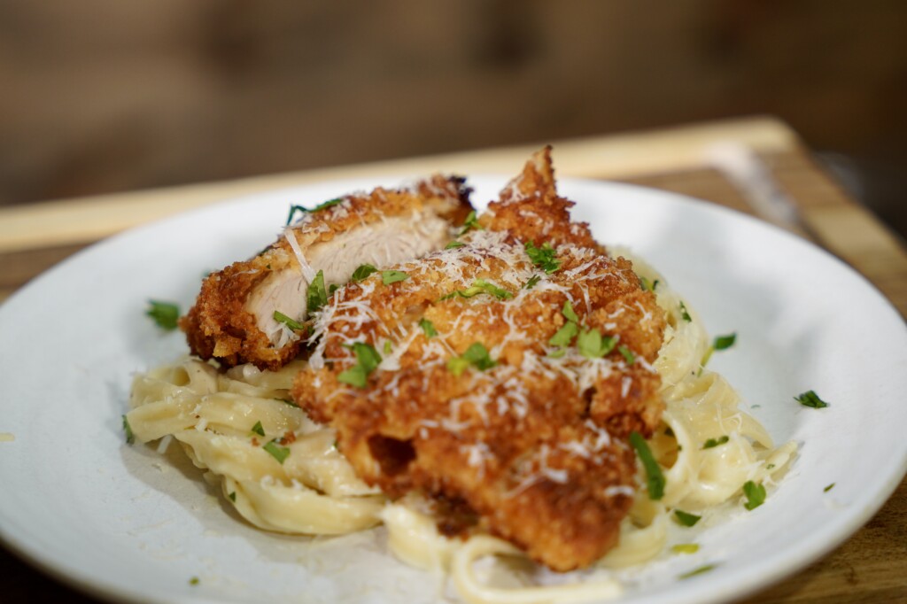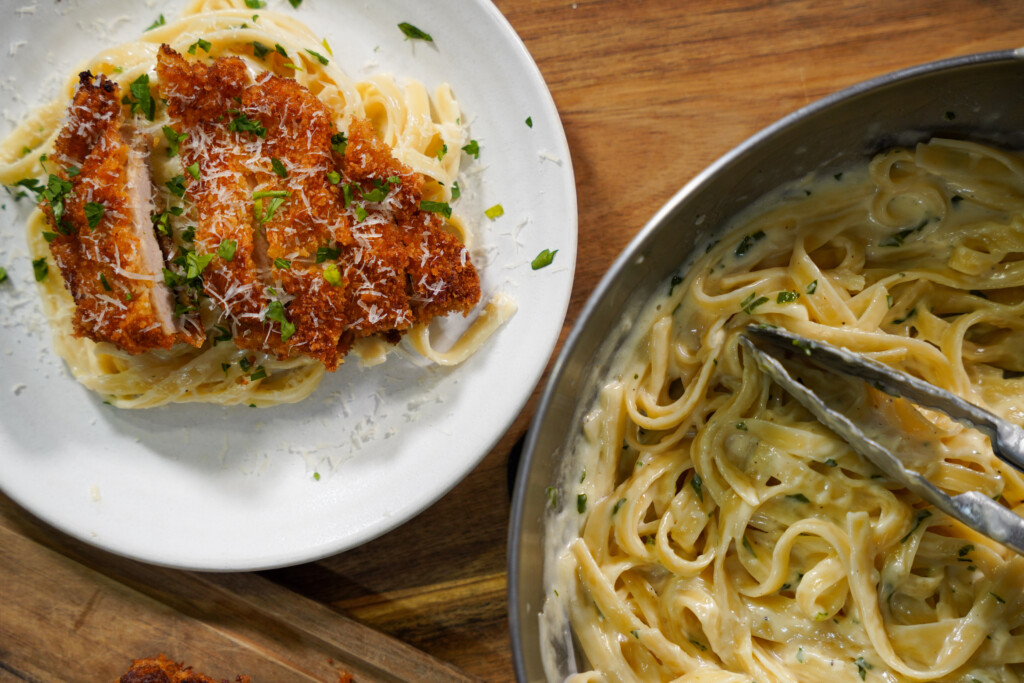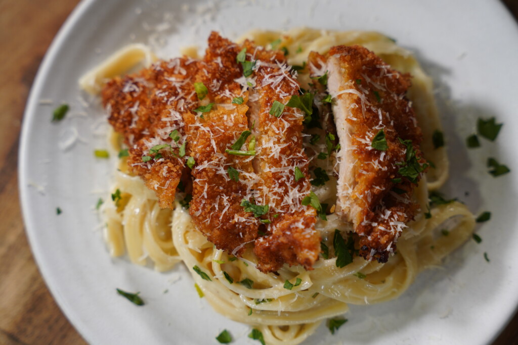 The Alfredo sauce is made from scratch with fresh garlic, real Parmesan, and a touch of lemon juice to brighten everything up. It’s rich without being heavy and coats the pasta beautifully. Combined with the crispy turkey cutlets, every bite is packed with texture and flavor.